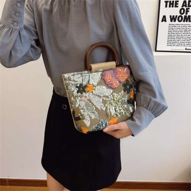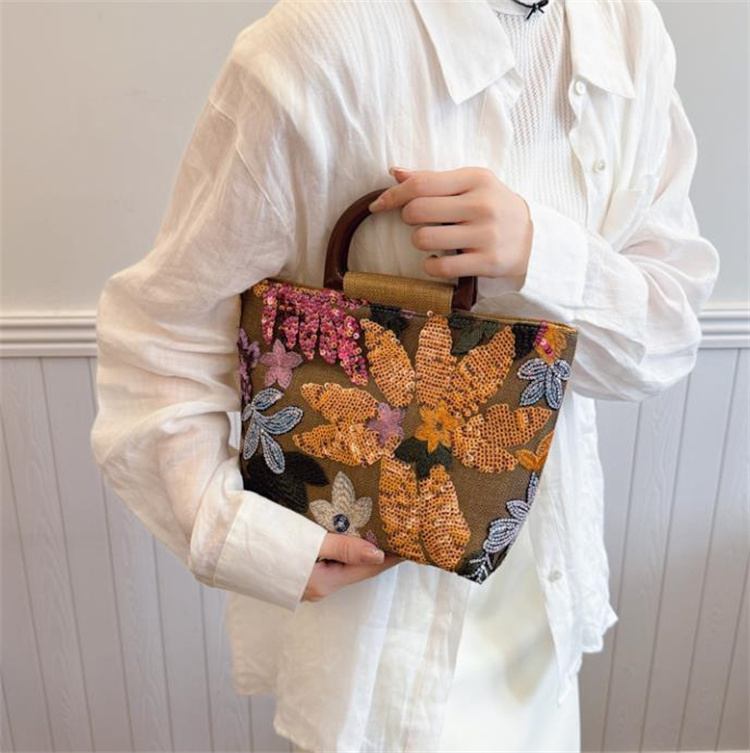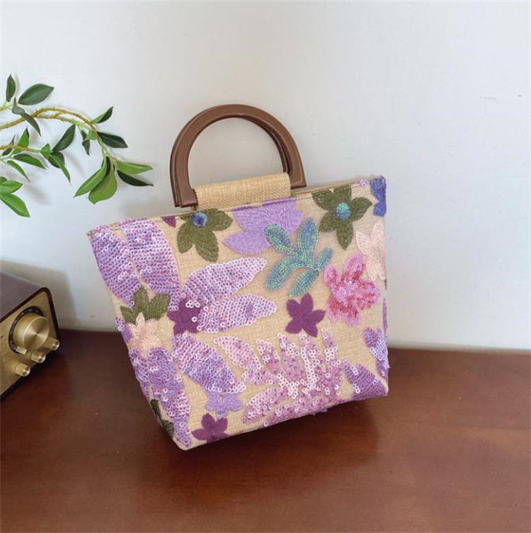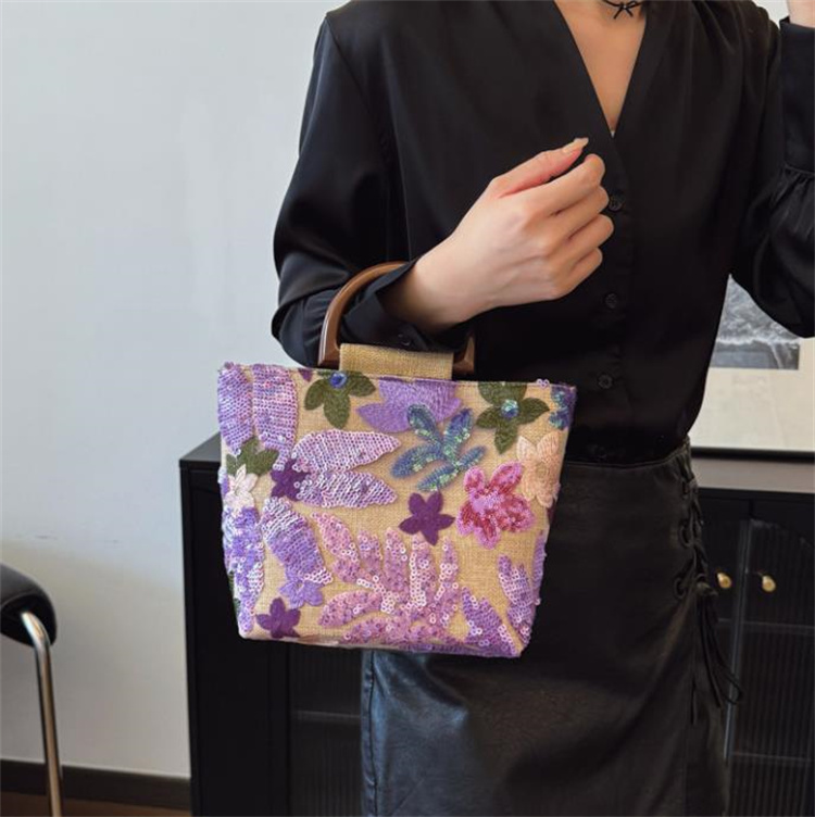 キュートな小方型デザインの竹節ハンドバッグが登場!PVC素材と麻生地の組み合わせで、軽量ながらもしっかりとした耐久性を実現しました。マグネット式開閉(磁扣)で使いやすく、繊細な刺繡(重工刺繍)が高級感をプラス。パープル・イエロー・グリーンの3色展開で、春のファッションや日常使いにぴったり◎ コンパクトサイズながらスマホや小物が収まる機能性も魅力です。