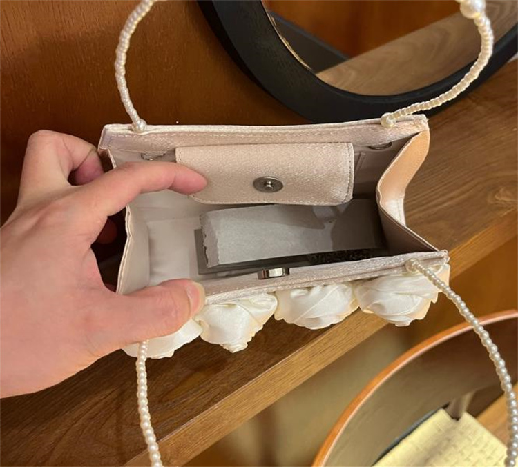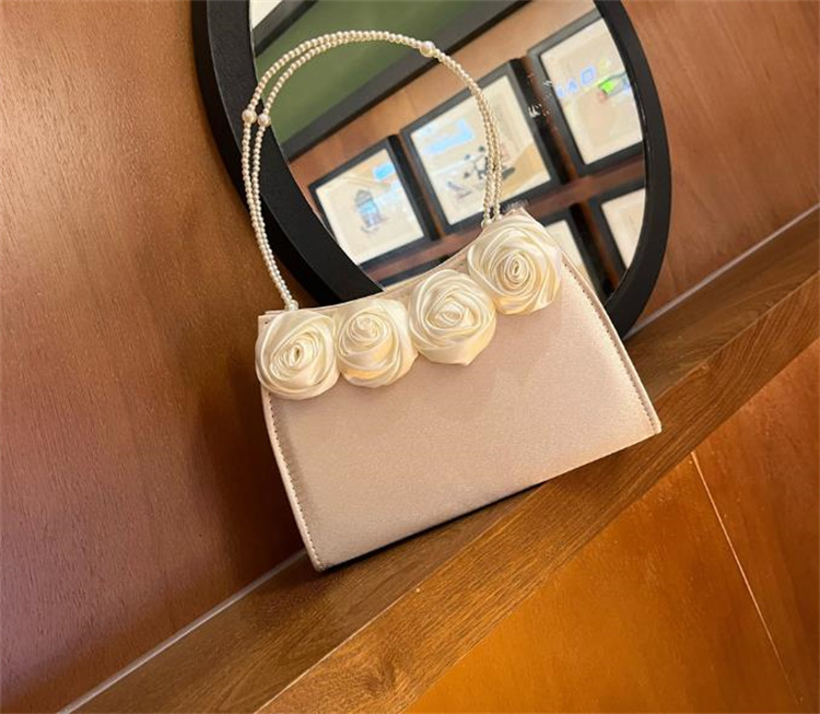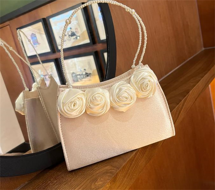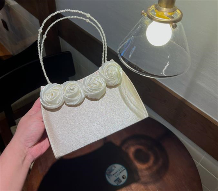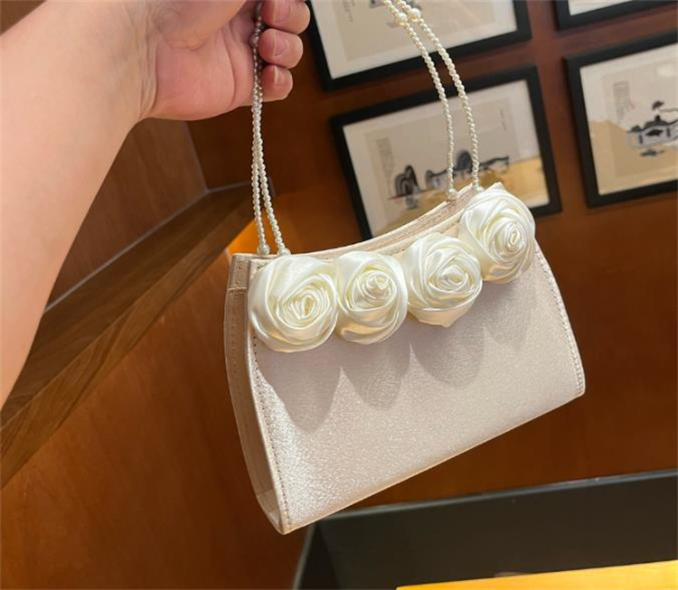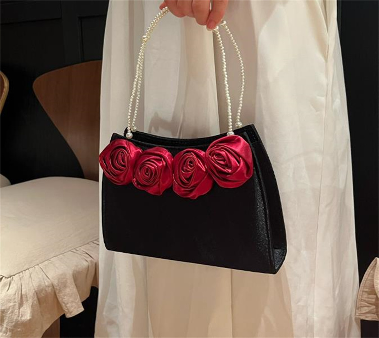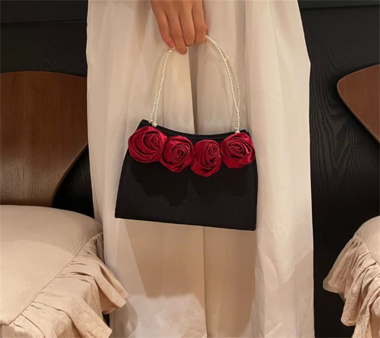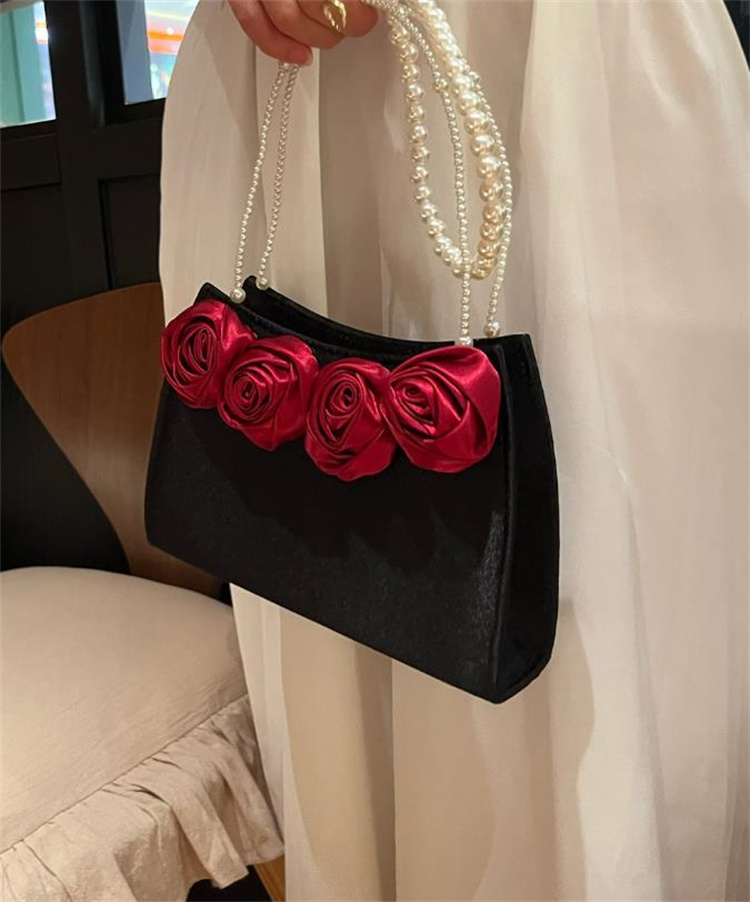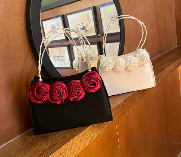 エレガントな薔薇刺繍とパール持ち手が美しい着物バッグです。