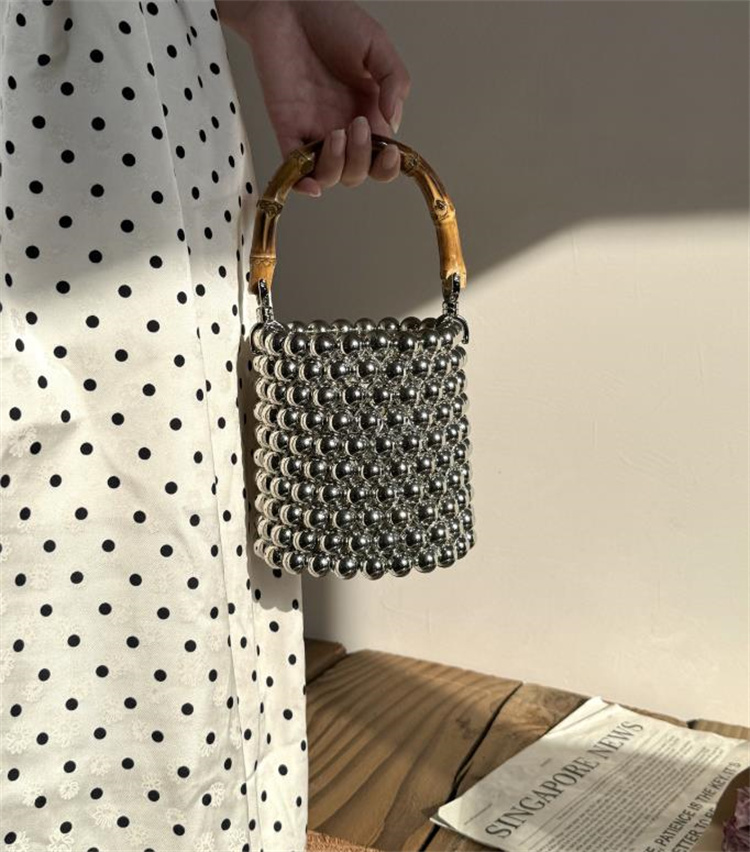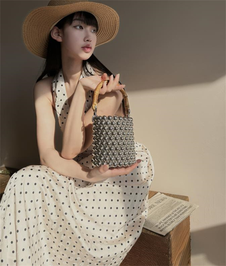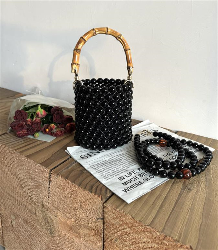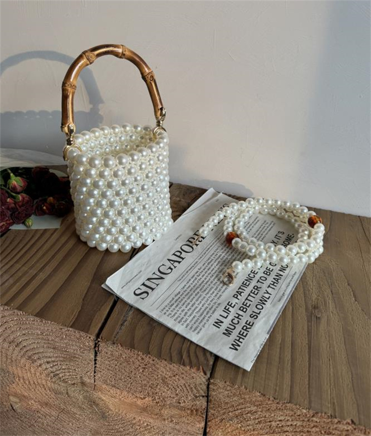 中国風デザインのバケットバッグです!上品なパールとハンドメイドのビーズが繊細な美しさを演出。竹節をモチーフにした持ち手が和のテイストを際立たせます。柔らかな素材で軽量ながら大容量、スマホや財布など日常使いに最適。伝統工芸の趣きを残しつつ、シンプルなシルエットでどんなコーデにも馴染むおしゃれさ。贈り物にも喜ばれる上品な逸品です