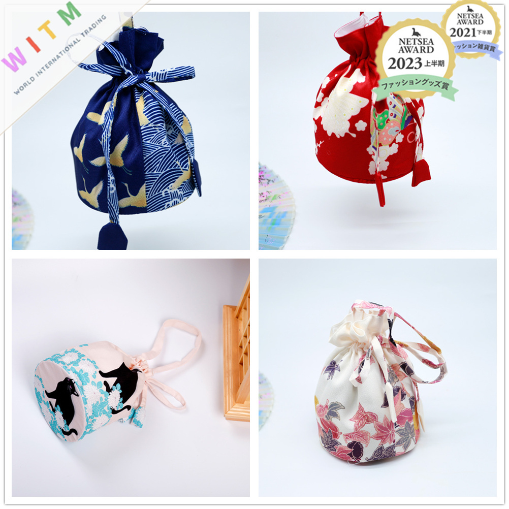 着物バッグ専門店の高級感ある和風巾着袋です。 鶴や猫などの美しい花柄デザインで、小物や雑貨を上品に収納できます。 贈り物の包装袋としても最適で、小銭入れや化粧品入れなど多用途にご活用いただけます。
