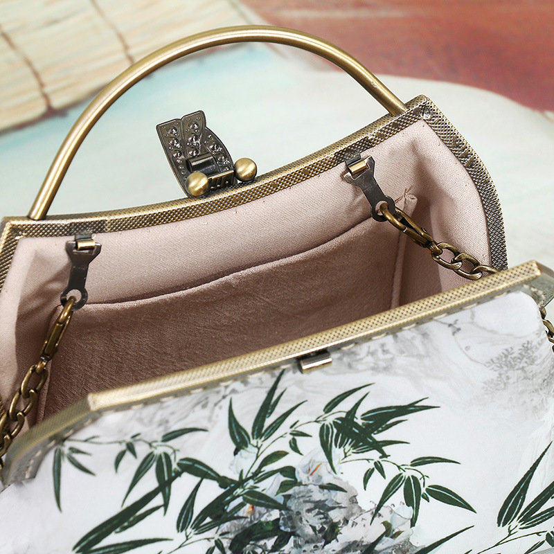 がま口式の開閉で使い勝手がよく、上品な金具が和装にも洋装にも調和します。