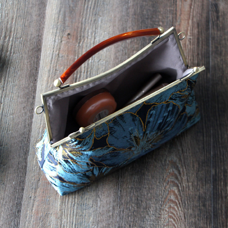 格調高いがま口タイプのクラッチバッグで、結婚式やパーティーなどの特別な日にぴったりです。